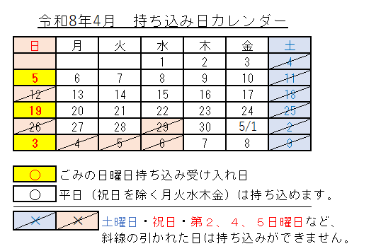 令和8年4月のごみの受付について 【第1週・第3週の日曜日】の受付時間は、