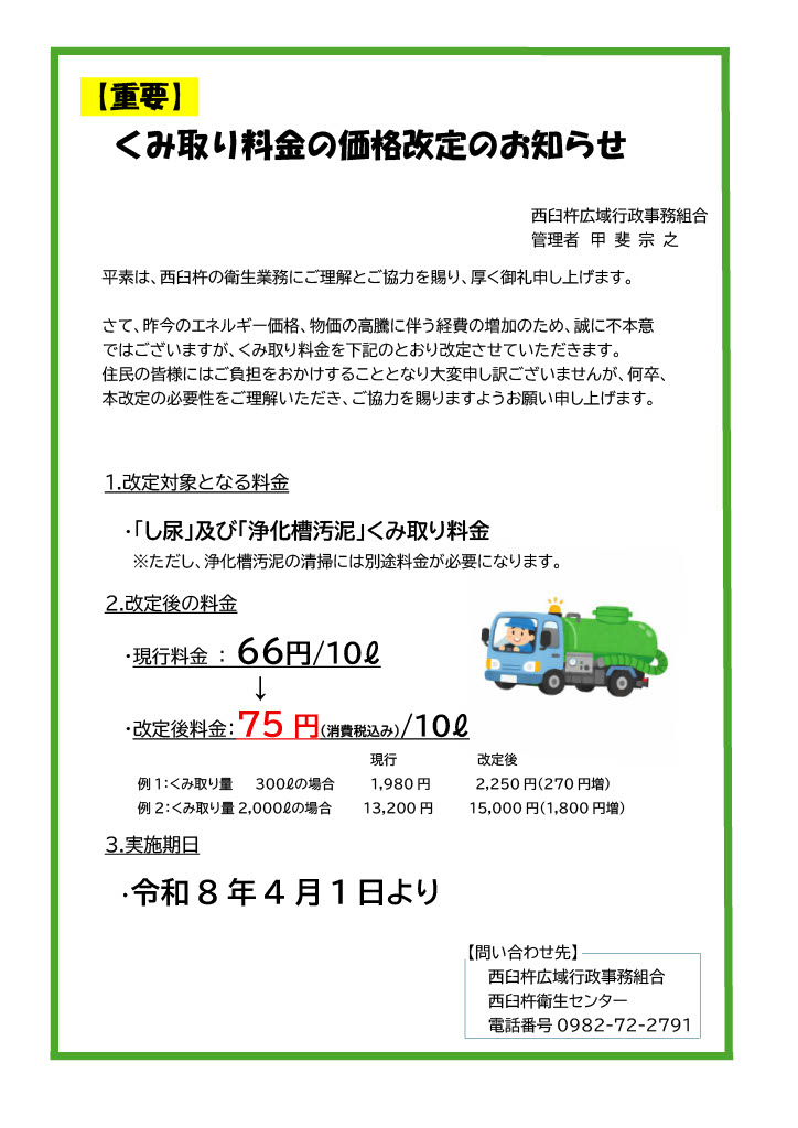 令和8年4月1日から、汲み取り料金の改定が行われます。 1.改定対象となる料金