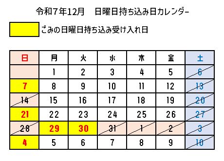 令和7年12月の休日のごみの受付について 【第1週・第3週の日曜日】の受付時間は、