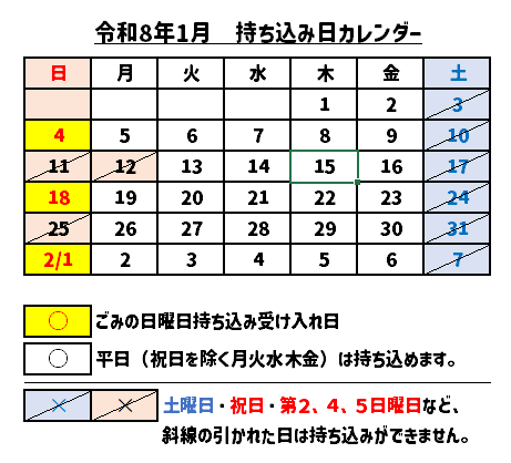 令和8年1月のごみの受付について 【第1週・第3週の日曜日】の受付時間は、